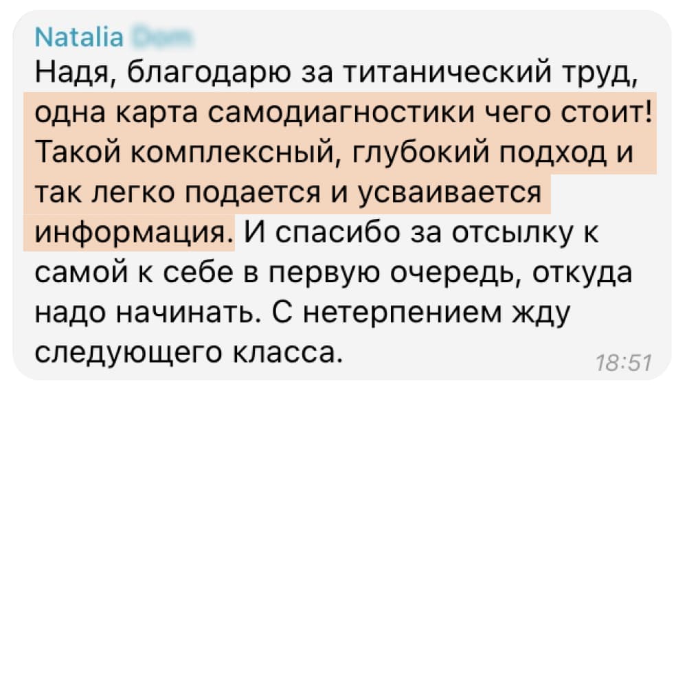От души благодарю Надю и команду за очередную волшебную программу, это очень-очень ценно!